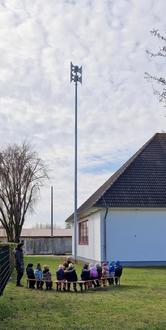 Dank der guten Zusammenarbeit mit der Freiwilligen Feuerwehr Neuenkirchen wurde schnell eine Idee entwickelt, wie die neue Sirene im Dorf kindgerecht vorgeführt werden kann. Jede der vier Kindergartengruppen hatte einen Termin in der Feuerwehr und Wehrführer Andre Blonsky hat sich für die vielen Fragen der Kinder Zeit genommen. An dieser Stelle ein herzliches Dankeschön. Die Kinder lernten, dass die Sirene zur Warnung der Bevölkerung dient und sie keine Angst haben brauchen. Denn wenn dieses Signal ertönt, ist die Feuerwehr bereits alarmiert und auf dem Weg um zu helfen. Schnell sammelten die Kinder zusammen, wann die Feuerwehr überhaupt alarmiert wird. Zum Beispiel wenn es brennt, ein Autounfall passiert ist oder Bäume auf die Straße kippen. Über einen großen Lautsprecher ertönte dann auch das Geräusch der Sirene dreimal und die Kinder waren absolut fasziniert von der neuen Sirene, die direkt neben unserer Kita steht. Die Sirene ertönte aus einem ganz bestimmten Grund dreimal. Die Kinder haben genau zugehört und gelernt, dass sie bei einem Einsatz dreimal ertönt und beim Probealarm samstags um 12:00 Uhr nur einmal.