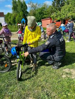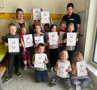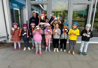 Erfolgreiche Abnahme des Fahrradführerscheins für unsere Frösche (Kindergartengruppe) mit unserem Kontaktbeamten Herr Bilow.
