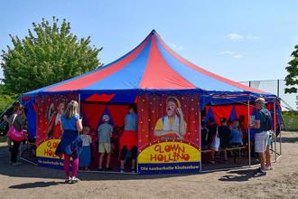 Es war wieder ein buntes Treiben in der Wampener Straße: laute Anfeuerungsrufe, Trommler, Live-Musik, der Dorfhahn, das weiße Einhorn, ein Zirkuszelt und viele Imbissstände sorgten für Volksfeststimmung.