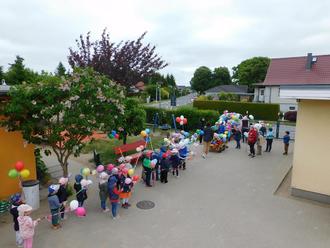 In der Entdeckungskiste hatten alle Eltern mit Ihren Kindern einen bunten Stock gebastelt und diese sollten natürlich auch gezeigt werden. Also sind wir mit allen Kindern durch den schönen Ort Wackerow gezogen und haben diese zur Schau gestellt. Mit Musik im Gepäck ging es vom Kindergarten los durch das neue Wohngebiet. Auf dem Rückweg an der Feuerwehr vorbei und am neu gebauten Kitagebäude wieder zurück zur Entdeckungskiste. Dort gab es dann für jedes Kind ein leckeres Eis zum Naschen. Es hat allen Kindern viel Spaß gemacht und wir werden das im nächsten Jahr sicher wiederholen.
