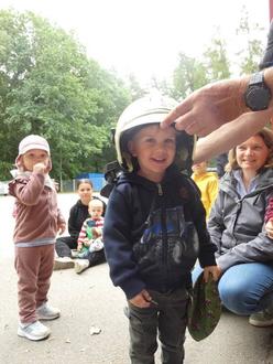 Ein weiterer Höhepunkt des Ausflugs war zweifellos die Möglichkeit, die Schutzkleidung der Feuerwehrleute anzuziehen. Die Gruppe versuchte, sich die schweren Helme auf ihre Köpfe zu setzen. Natürlich durfte auch das Thema "Feuerlöschen" nicht fehlen. Die Kinder erhielten eine altersgerechte Einführung in die verschiedenen Löschmittel und Brandbekämpfungstechniken.