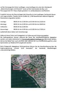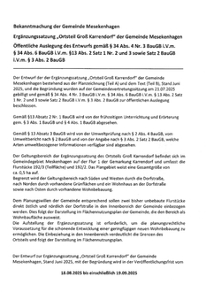 Der Entwurf zur Ergänzungssatzung „Ortsteil Groß Karrendorf“ der Gemeinde Mesekenhagen, Stand Juli 2025, mit der Begründung wird in der Veröffentlichungsfrist vom
