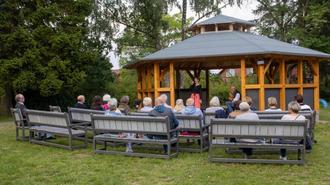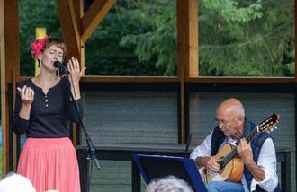 Am 18. August fanden sich gut 25 musikbegeisterte Leute aus unserer Gemeinde auf dem Gelände des Kindergartens von Weitenhagen, vor dem Pavillon zu einem unterhaltsamen Musikabend, unter freien Himmel ein. Um 19.00 Uhr eröffneten Katja und Elm vom Duo Coracao den fantastischen Abend und nahmen uns auf eine musikalische Reise im Takt von stimmungsvollen Chansons, spanischen Balladen und flotten Samba-und Bossa Nova-Rhythmen mit. Katja Wild verzauberte mit ihrer klaren Stimme und ihrem Talent für die verschiedenen Sprachen und Elm Neuber zog uns mit seinen temperamentvollen Samba-Rhythmen an der Gitarre in den Bann. Katja sang Lieder auf Französisch, Spanisch, Portugiesisch und einige auf Englisch. Durch Lieder wie „Garota de Ipanema“, „Sous le ciel de Paris“, „Hijo de la luna“ und „Por causa de você, menina“ besuchten wir an einem Abend Länder wie Brasilien und Frankreich und durch ihre tollen Erläuterungen hörten viele von uns die teilweisen bekannten Lieder mit einem ganz neuen Verständnis. In der Pause und auch nach dem Konzert kamen einige Gäste mit den Künstlern ins Gespräch und alle waren sich einig, dass es ein gelungener Abend war und gerade auch das Ambiente im oder vor dem Pavillon sehr zu der stimmungsvollen Atmosphäre beitrug.