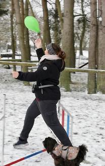 Am Samstag, dem 10.12.2022 fand ein kleines Nikolausfest während der Welpen- und Junghundstunde statt. Bei weihnachtlichen Klängen durften die ganz Kleinen einen Parcours mit verschiedenen Stationen absolvieren. Danach konnten sie im Schnee miteinander toben. Die Jungspunde dagegen spielten die „Reise nach Jerusalem“ und Eierlauf. Außerdem fand ein Wettrennen mit Luftballons statt. Manch einer entwickelte hier starken Siegeswillen und gab alles.