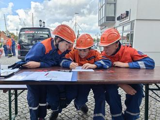 So ein Marsch beinhaltet viele spannende Aufgaben und Übungen rund um das Thema Jugendfeuerwehr. Mal galt es gemeinsam einen „Schlauchzopf“ zu flechten und mal ein paar knifflige Fragen zu beantworten.