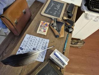 Viele Ausstellungsstücke sind dazu gekommen. Besonders freuen wir uns über eine alte Schulbank. So können unsere Kinder, Enkel und Urenkel sehen, wie es bei den Großeltern in der Schule war.
