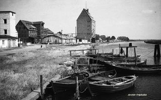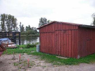 Für die Lagerung der vielen Gerätschaften konnte der Fischer Terner 1946 mit Hilfe der Roten Armee diesen Schuppen an der Peene bauen. Das Material kam von dem leerstehenden Dübelwerk. Auf der „Bleiche“ trockneten die Fischer ihre Netze und Reusen. Diese Flächen gehörten ehemals der Bäckerinnung. Es waren im Sprachgebrauch die „Bäckerwiesen“. Die Fischer hatten sich dieser Innung angeschlossen. Heute gehen viele Angler mit einem „Fischereischein“ ihrem Hobby nach und erreichen oftmals Rekordfänge.