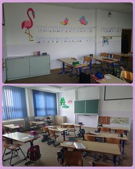 Arbeitseinsatz in der Grundschule Görmin: Hier waren in den Winterferien „fleißige Bienchen“ unterwegs. Überall wurde geputzt und gewerkelt. Die Schule erhielt eine Grundreinigung und im Klassenraum der 2. Klasse wurde renoviert und gemalert. Die Wände bekamen einen frischen neuen Anstrich in den Farben weiß, grau und flieder. Die kleinen süßen Figuren verleihen dem Ganzen einen besonderen Ausdruck und runden das Bild ab.