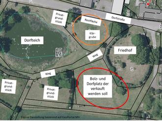 Die Stadtvertretung Loitz sagt zu dem Grundstücksverkauf, dass die übrigbleibende Fläche genügen würde und weiterhin genutzt werden könne. Doch mittig auf der Restfläche befindet sich eine Beton-Klärgrube der Stadtwerke mit Umzäunung von knapp 10 x 10 Metern Größe und eine Zuwegung für die Privatgrundstücke neben dem Teich. Direkt neben dieser Fläche liegt der Teich mit seinem recht steilen Uferbereich. Von der zu verkaufenden Fläche sollen etwa 10 % erhalten bleiben (siehe anliegende Karte). Wir sind der Auffassung, dass die bisherige Nutzung als Bolz- und Festplatz dadurch nicht weiter möglich wäre. Weitere Flächen für solche Aktivitäten gibt es in Wüstenfelde nicht, auch keinen Spielplatz oder einen Gemeinderaum, in dem man sich treffen kann. Was bleibt uns dann noch?