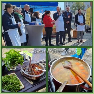 Die Kartoffelsuppe aus Loitz wagte sich mit ihren Zutaten und der Zubereitung in das Bürgermeister – Kochbuch und konnte auf dem Anklamer Markt am 24. April verkostet werden. Frau Christin Witt, Bürgermeisterin von Loitz, präsentierte das Buch und die Suppe