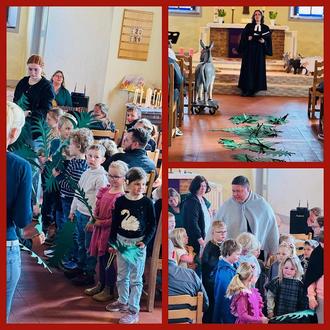 Viele Kinder aus dem Kindergarten haben es geschafft ihre Eltern an die Hand zu nehmen und zum Gottesdienst zu kommen. Immerhin hatten sich die Kinder lange darauf vorbereitet und spielten die Geschehnisse an Palmsonntag vor zweitausend Jahren nach. Und an diesem Tag war wohl mindestens genauso viel los, wie in diesem Jahr in Loitz. Denn damals kam Jesus nach Jerusalem und viele, viele Menschen standen an den Straßen und freuten sich darüber. Sie freuten sich so sehr, dass sie Jesus einen ganz besonderen Weg bereiteten. Sie nahmen die Palmenblätter und schmückten damit seinen Weg. Jesus und seine Freunde sind auf diesen Teppich von Palmenblättern damals in Jerusalem eingezogen.