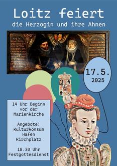 | 18 Uhr | Die Herzogin sammelt ihre Gäste ein und zieht vom Hafen mit einem Fackelumzug bis zur Kirche |