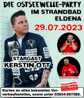 Los geht’s im Strandbad ab 20 Uhr mit Klängen der bekannten Ostseewelle DJ’s Alex Stuth und Christian Renz, bevor dann Kerstin Ott mit ihren bekannten und neuen Hits den Gästen richtig einheizt. Karten zur Party gibt es ab sofort an allen bekannten Vorverkaufsstellen, im Internet unter www.reservix.de sowie telefonisch unter 03834-507285.