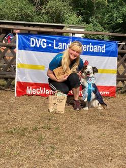 Andrea und Benji nahmen am 24.06. an der DVG M-V Landessiegerprüfung Rally Obedience in Bad Doberan teil.