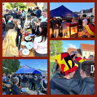 Loitz im Fußballfieber! Was für wunderbare gemeinschaftliche Events waren das! Für Jung und Alt, für Groß und Klein! Jedes Deutschlandspiel wurde im Zelt hinter der Lutherkirche übertragen, dazu gab es Getränke, Bratwurst, Popcorn und Crepes, Kinder und Jugendliche spielten zusammen auf dem Rasen mit dem Ball, jenseits von Kroos und Musiala. Vorher und nachher hieß es stundenlang hin- und hertragen, einkaufen, vorbestellen, reinigen, aufräumen, zusammenstellen usw. Deshalb sei allen so geduldigen und fleißigen Helfern von Herzen gedankt, denn nur dadurch war es möglich.Wie schön und ein bisschen schade auch, dass dann schon im Viertelfinale Schluss war ...