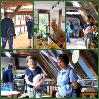 Einen angenehmen und entspannten Besuch der Mitarbeiter der Stadtverwaltung der Hansestadt Demmin hat der Loitzer Heimatverein am 3. Juli im KulturKonsum empfangen können. Die Demminer, an deren Spitze der Bürgermeister Thomas Witkowski stand, wurden über die Historie des alten Kaufmannshofes und die jetzige Nutzung informiert. Alle kamen per Rad nach Loitz, ein Stück auf dem neu angelegten Radweg von Demmin nach Pensin. Neben dem KulturKonsum besichtigten sie die Hafenanlagen und die Destille in Loitz. Dort wurden sie freundlichst bewirtet. Im KulturKonsum ließen wir es uns nicht nehmen, die Besucher mit der „ Loitzer Suppkartoffel“ zu verwöhnen. Ein Gericht, welches in Loitz Tradition hat und auch im Kochbuch der Bürgermeister mit einem Rezept zum Nachkochen zur Verfügung steht. Sigrid Daus rührte diese Suppe an, Dr. Almut Wenetiadis servierte sie und alle Gäste löffelten sie mit Genuss aus. Die Führung im Hof und auf den einzelnen Böden des Kemladens weckten Interesse, noch einmal wiederzukommen.