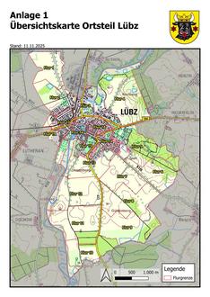 Die räumliche Abgrenzung des Stadtgebietes Lübz (Anlage 1) und der Ortsteile ist in den Anlagen 1 bis 8 dargestellt. Die Anlagen sind Bestandteil dieser Hauptsatzung.