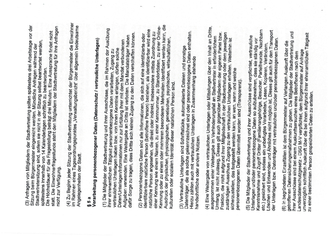 (5) Die Mitglieder der Stadtvertretung und ihrer Ausschüsse sind verpflichtet, vertrauliche Unterlagen und/oder personenbezogene Daten so aufzubewahren, dass sie ständig vor Kenntnisnahme und Zugriff Dritter (Familienangehörige, Besucher, Parteifreunde, Nachbarn etc.) gesichert sind, sodass ein unbefugtes Verarbeiten, Lesen, Kopieren, Verändern, Löschen und Entwenden und Ähnliches nicht möglich ist. Dieses gilt auch für den Transport der Unterlagen bzw. Datenträger mit vertraulichen und/oder personenbezogenen Daten.