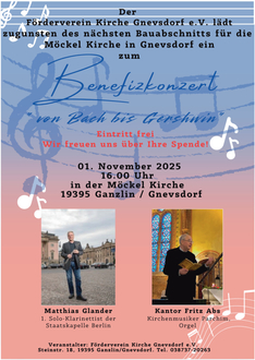 | 16.00 Uhr | Benefizkonzert „Von Bach bis Gershwin“, Kirche Gnevsdorf |