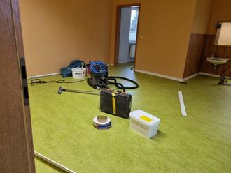 Die Winterferienzeit wurde auch dazu genutzt, die geplanten Verschönerungsarbeiten in den Kita-Räumen fortzusetzen. Deshalb halfen am Freitagnachmittag vor den Ferien einige Väter beim Ausräumen der Gruppenräume. Dies war notwendig, um im gesamten Kitabereich einen neuen Fußboden zu verlegen. Trotz einiger unliebsamer Überraschungen nach dem Herausreißen der Belege haben sich alle bemüht, die Arbeiten pünktlich abzuschließen, damit die Kinder hier wieder einziehen können. Vielen Dank den Handwerkern der Firma Grosser aus Lübz und allen, die beim Räumen mitgeholfen haben.
