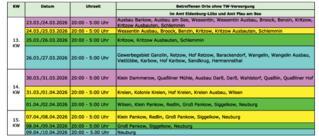 | - | Rohrnetzspülung / Unterbrechung der Versorgung erfolgt in den angegebenen Zeiträumen; |