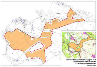 Die Gemeindevertretung der Gemeinde Gallin-Kuppentin hat in der Sitzung am 25.08.2020 die Aufstellung des vorhabenbezogenen Bebauungsplans Nr. 6 „Solarpark Kuppentin“ beschlossen und der Vorentwurf wurde in der Sitzung vom 02.05.2023 zur erneuten frühzeitigen öffentlichen Auslegung bestimmt.