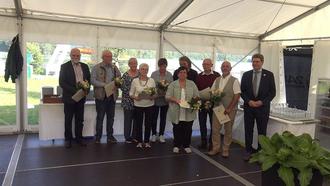 Für 30 Jahre kommunalpolitisches Engagement wurden bei der Feier ausgezeichnet (v.l.n.r.): Ulrich Wandschneider, Günther Alexy, Gudrun Jarchow, Inge Arnhold (vorne), Ute Frehse, Viola Dreschler (vorne), Carola Leu, Jürgen Kühl, Rainer Hromada.