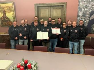 Anlässlich der Eintragung ins Ehrenbuch der Stadt konnte Micheal Meyer, Fraktionsvorsitzender der CDU Malchow, einen Scheck über 650,- Euro überreichen. Der Ortsverband hatte auf der Weihnachtsstraße für die Wölfe gesammelt und unterstützt mit den Einnahmen immer Sportarten und Vereine, die nicht so sehr in der medialen Aufmerksamkeit stehen.