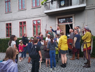 Waren es im letzten Jahr noch die wilden Krieger, so reichte in diesem Jahr der Nachwuchs, um das nicht so wehrhafte Inselvolk der Malchower und unser Rathaus zu besetzen. So begann das ganze Spektakel mit dem Kindersturm auf das Rathaus. Als Pfand musste ich den Schlüssel und meine Stellvertreterin übergeben, um dann auf der Insel um Gold, Met und Bier zu bitten, um das Stadtsäckel zu schonen und die Stadt zu befreien. Mit Unterstützung einiger spendabler Malchower wurden sowohl die Wikinger, aber natürlich insbesondere die Kinder ausreichend mit Goldbären, Goldtalern und allerlei Süßigkeiten versorgt und haben dann das Rathaus wieder freigegeben. Auch die übrigen Aktivitäten auf dem Klosterareal zogen wieder zahllose Besucher an beiden Tagen an. Neben dem traditionellen Handwerk, den Schaukämpfen, den Theateraufführungen und der Livemusik, war insbesondere auch wieder die Feuershow ein Highlight. Der Kultur- und Sportring hat sich in diesem Jahr schon wieder die Dienste der Wikinger für das nächste Jahr gesichert. Vom 15. bis 17.08.2025 sind sie dann bereits zum 5. Mal in Malchow. Darum wird es dann ganz besondere Höhepunkte geben.
