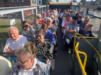 Stadtrundfahrt in Wismar mit einem offenen Doppeldecker: Gemeindeausflug in luftiger Höhe