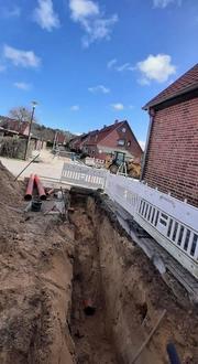 Was trotz des Wetters gut vorankommt, sind die Baumaßnahmen in der Fritz-Reuter-Straße. Auch hier gab es witterungsbedingte Verzögerungen, nun läuft es aber nach Plan und der zweite Straßenabschnitt wurde schon begonnen.