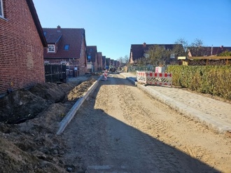In der Beethovenstraße sind wir noch immer im 2. Bauabschnitt, hier entstehen gerade die Gehwege und Straßenbegrenzungen.