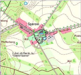 Übersichtsplan zur Bekanntmachung der 2. Änderung und Ergänzung des Vorhabenbezogenen Bebauungsplanes Nr. 1a „Gutshof Sparow“ der Gemeinde Nossentiner Hütte