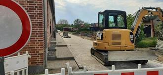 Nachdem nun die Freigabe der Trinkwasserleitung vorliegt, hier mussten hygienische Kontrollen abgewartet werden, können die Tiefbauarbeiten abgeschlossen werden. Für die Versorgung der Straße mit Lichtkabeln und Breitbandleerrohr musste die Heinestraße geöffnet werden. Die Verlegung ist erfolgt und die Pflasterung ist zum Erscheinungsdatum sicher schon wieder hergestellt. Gut, dass ich mich damals beim Denkmalschutz durchgesetzt habe und wir nicht eine Teerstraße im Lager haben. Genau wegen solcher späteren Straßenarbeiten hatte ich dafür gekämpft, Betonpflaster zu verwenden, damit man die Oberfläche wieder herstellen kann und kein Flickenteppich entsteht.