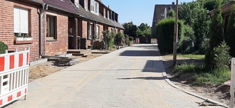 Es ist wie beinahe überall. Die ursprünglich geplanten Termine können dann am Ende doch nicht eingehalten werden. So ist es auch bei der Fritz-Reuter-Straße. Lieferschwierigkeiten, schlechtes Wetter und Krankheit haben den geplanten Fertigstellungstermin in den Juni verschoben. Das, was bisher dort aber entstanden ist, entschädigt für die Verzögerung. Neben der Heinestraße und der Mozartstraße ist nun die dritte Straße im Lager erneuert worden.