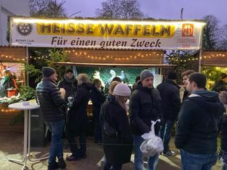 Einer langjährigen Tradition folgend, verkauften Mitglieder des Malchiner Rotary Clubs an allen 3 Adventswochenenden auf dem Weihnachtsmarkt am Schloss Bredenfelde, frisch gebackene Waffeln und heiße Getränke. Erstmalig wurden wir am ersten Adventswochenende von dem Bürgermeister der Stadt Malchin, Herrn Axel Müller, und weiteren 3 Mitarbeitern des Malchiner Rathauses tatkräftig unterstützt. Am zweiten Adventswochenende standen uns Mitarbeiter der Malchiner Tafel hilfreich zur Seite. Großen Anklang fand wiederum die beliebte Schinkenlotterie, bei der an jedem Tag als Hauptpreis 1 Burgunderschinken einen glücklichen Besitzer fand. Die Malchiner Rotarier bedanken sich bei allen Gästen, die mit dem Erwerb der Waffeln oder der Lose zu dem Ergebnis von 1.500 Euro beitrugen.