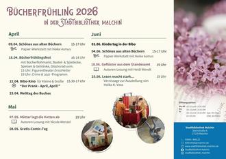 Das Programm wird gefördert und unterstützt vom Förderverein „Malchiner Bibliotheksfreunde“ e. V. und dem Landkreis MSE. Die gedruckte Ausgabe erhaltet ihr u.a. in der Stadtbibliothek Malchin.