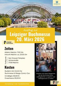 Auch 2026 machen wir uns wieder auf den Weg zur Leipziger Buchmesse. Die Vorbereitungen für die Tagesfahrt am 20.03.2026 laufen und der Vorverkauf der limitierten Buchmesse-Tickets hat begonnen. Jetzt brauchen wir nur noch Euch!