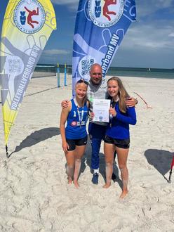 Mathilda Dill (li.), Trainer Remo Fröhlich und Spielpartnerin Lisa Zornow holten am ersten Juli-Wochenende insgesamt drei Landesmeister-Titel im Beachvolleyball. In den Altersklassen U-17, U-18 und U-19 gewann das Powerduo und setzten sich dabei gegen eine starke Konkurrenz durch. Mehr dazu lesen Sie in dieser Ausgabe.