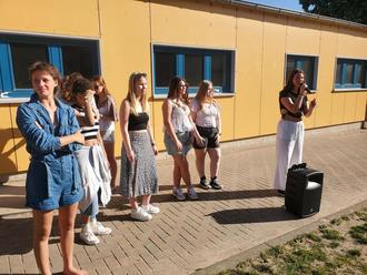 Als besonderes Dankeschön für den Einsatz und die Ausdauer der Grundschulkinder überreichten die Gymnasiasten am 2. Juli 2025 jeder Teilnehmerin und jedem Teilnehmer eine selbstgebastelte Medaille. Die FGG-Schülerin Lotte Zoschke gratulierte den jungen Läuferinnen und Läufern persönlich zu ihrer großartigen Leistung.