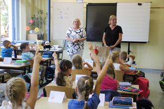 Am dritten Schultag gab es eine besondere Überraschung für die frischgebackenen Schülerinnen und Schüler. Frau Manuela Rißer, die Erste Stadträtin, und Frau Manja Zoschke als Zuständige für die Schulen besuchten die Klasse und hatten eine kleine, aber freudige Überraschung im Gepäck: Eisgutscheine für alle Kinder!