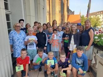 Zum Auftakt des neuen Schuljahres stand ein Rundgang durch das historische Gebäude auf dem Programm. Die Schülerinnen und Schüler hatten die Gelegenheit, den Aussichtsturm zu besteigen und einen besonderen Blick über die Stadt zu genießen. Weiter ging es in den großen Sitzungssaal, wo normalerweise wichtige Entscheidungen für die Stadt getroffen werden. Auch das Trauzimmer, in dem Paare sich das Ja-Wort geben, wurde besucht – ein Raum, der für viele Menschen in Malchin von großer Bedeutung ist.