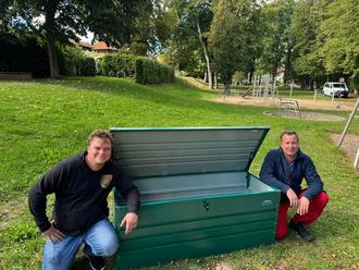 Damit das Spielzeug künftig sicher und dauerhaft aufbewahrt werden kann, ließ Dahms zwei große Metallkisten anfertigen. Mit einer Länge von 1,40 und 1,60 Metern sind sie nicht nur stabil, sondern auch mit Stoßdämpfern ausgestattet, sodass die Deckel nicht plötzlich zufallen können. Fest im Boden verankert, sollen sie lange halten.