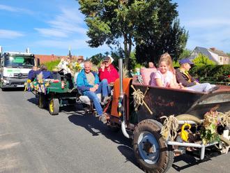 Der Tag begann mit einem farbenfrohen Festumzug, der sich von der Firma Nehlsen aus durch das ganze Dorf schlängelte. Zahlreiche Vereine, geschmückte Wagen, die Kita „Die Dorfstrolche“ und viele Einwohner machten den Umzug zu einem lebendigen Spiegel der Dorfgemeinschaft. Musik, fröhliche Gesichter und bunt geschmückte Straßen sorgten für eine ausgelassene Stimmung, die schon früh den Charakter dieses besonderen Tages prägte.