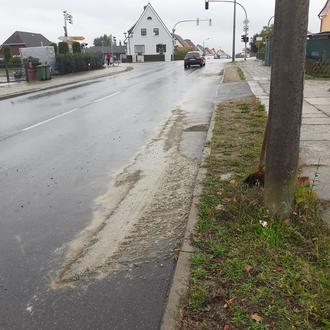 Am Freitag, den 13. Oktober 2023, kam es erneut zu einer Beschädigung des Asphalts in der Rudolf-Fritz-Straße auf Höhe der Zachow-Kreuzung. Hierbei trat Beton aus einem Fahrzeug, der nun ausgehärtet ist.