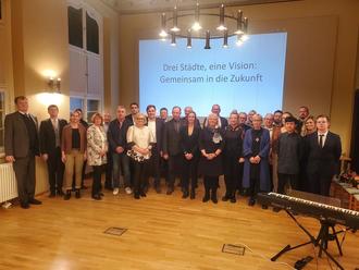 Musikalisch begleitet wurde die Veranstaltung durch die Schulband der Siegfried-Marcus-Schule, die die Gäste mit dem Lied „Someone you loved“ und dem Klassiker „Über sieben Brücken“ begeisterte. Zum Abschluss bedankte sich Bürgermeister Axel Müller bei allen Anwesenden und lud zum gemütlichen Beisammensein ein, bei dem zahlreiche Gespräche geführt wurden. Unter dem Motto „Drei Städte, eine Vision: Gemeinsam in die Zukunft!“ klang der emotionale Abend in freundschaftlicher Atmosphäre aus.