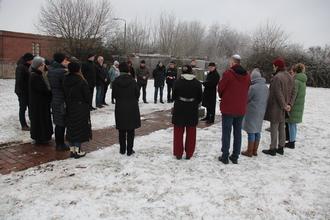 Entsprechend der jüdischen Tradition legten die Gäste Steinchen am Gedenkstein nieder.