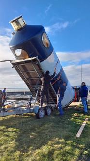 Gegen 10.00 Uhr morgens am 01. Februar begannen wir, den Leuchtturm zu demontieren, und in 2,5 Stunden war der Turm zum Abtransport bereit.