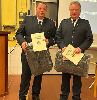Daniel Schünemann (li.) und Rico Zoschke blicken auf 30 Jahre in der Freiwilligen Feuerwehr Neukalen zurück.