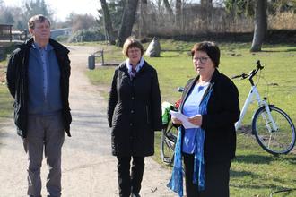 Petra Jahrmärker-Bakker (rechts im Bild) und die Bürgervorsteherin Dr. Kerstin Mahnek (Mitte) sprachen zu den Gästen. Auch Malchins Bürgermeister a.D. Jörg Lange zählte zu den Anwesenden.
